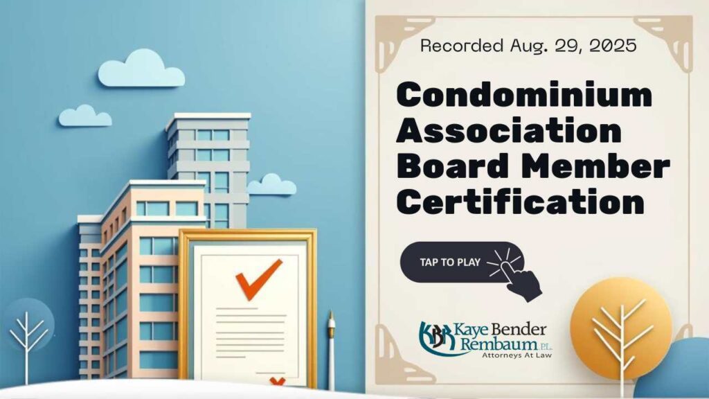 Here you will find Robert Kaye’s Legal Morsels, Jeffrey Rembaum’s column, Rembaum’s Association Roundup, the community association news you can use, and Kaye Bender Rembaum in the news.