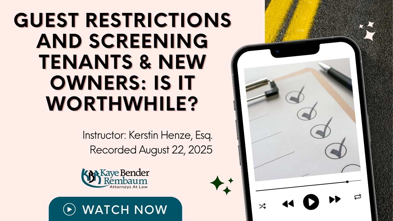Guest Restrictions and Screening Tenants & New Owners | Recorded August 22, 2025
